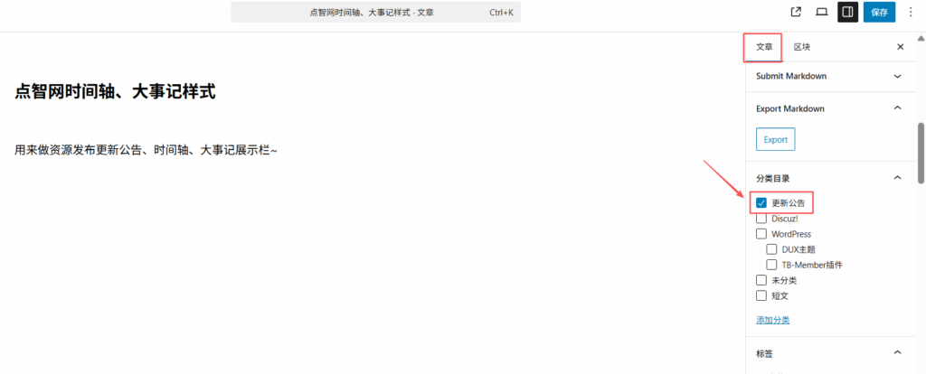DUX 9.5主题用快讯分类样式做更新公告、时间轴、大事记的教程经验记录: