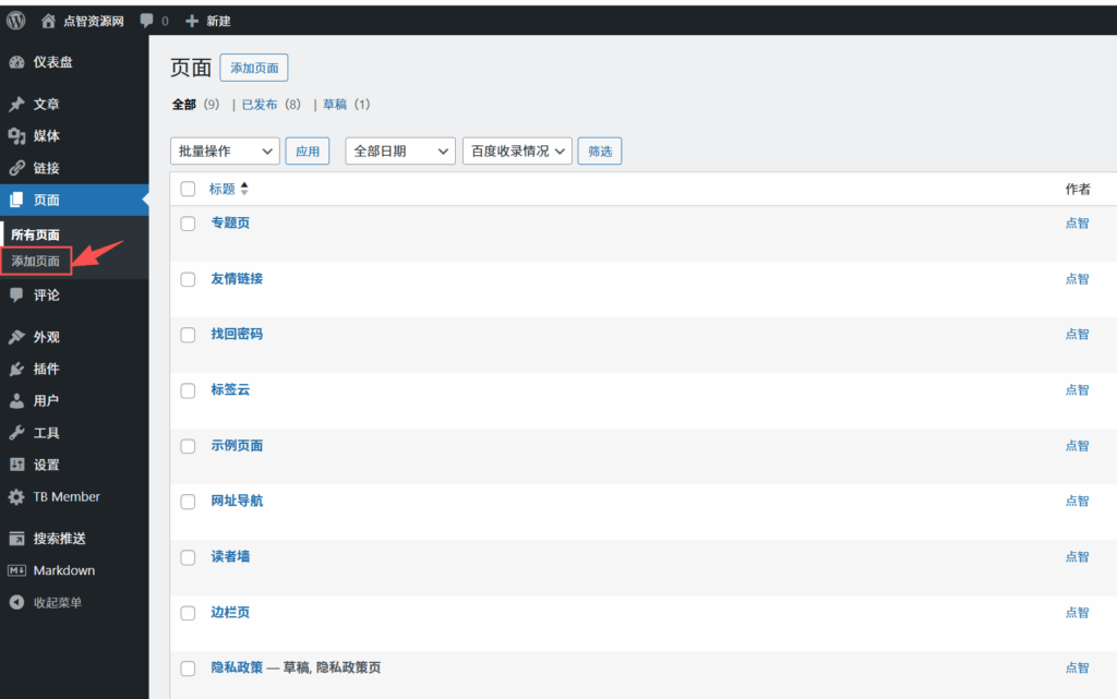 后台:页面 ——> 添加页面: