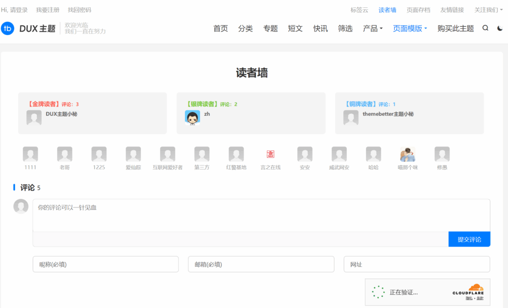 WordPress 6.x 版本最新DUX主题 9.x版本创建 读者墙 功能页记录: