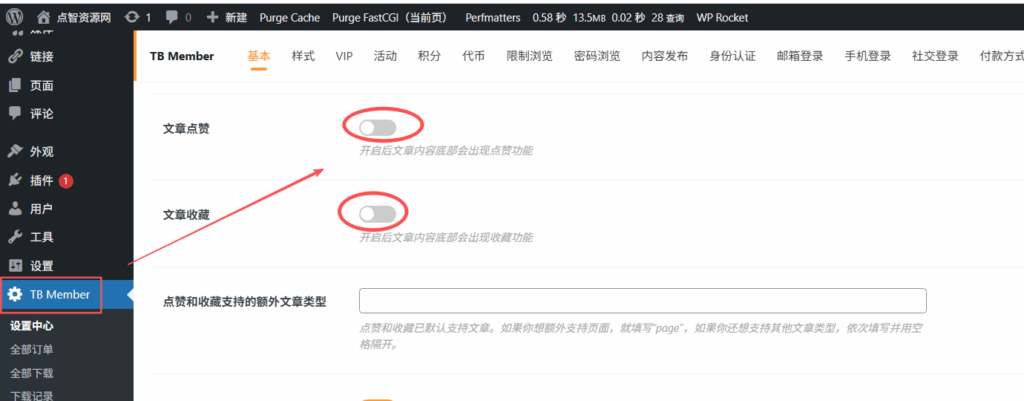 在 TB Member 插件设置里面的 —— 基本: