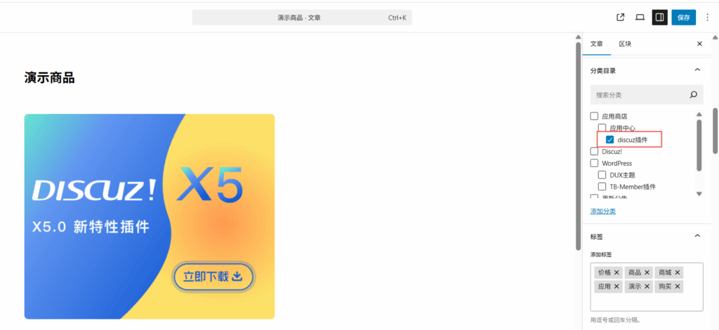 然后,我们发布个商品文章试下: