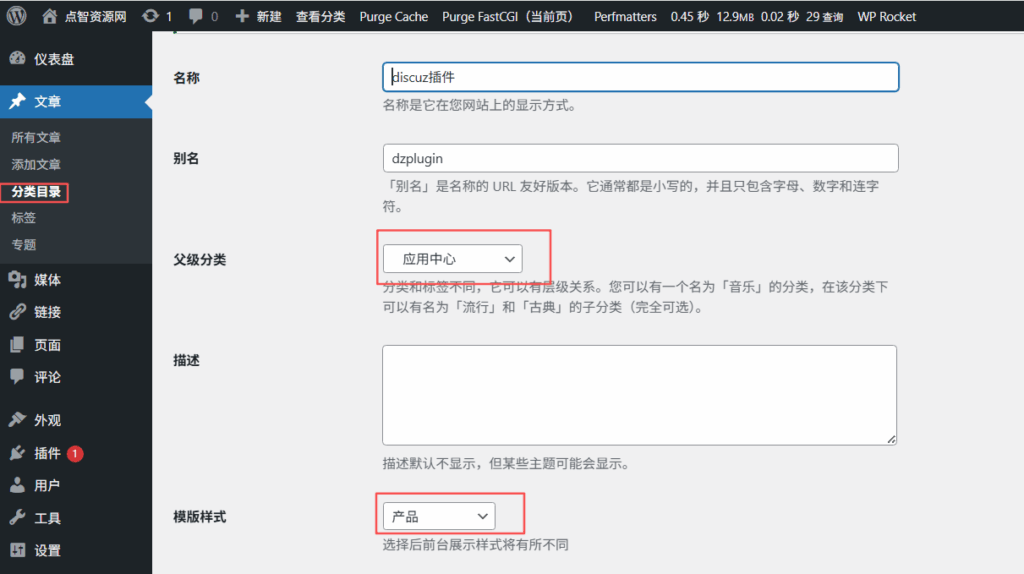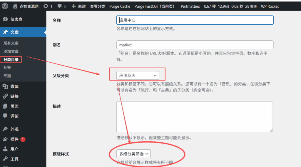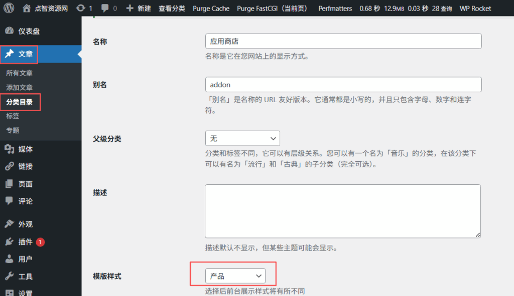 这里的父级分类,选择刚刚我们创建的产品分类名“应用商店”: